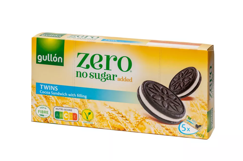 Búzaliszt (44 %), krém 29 % [édesítőszer (maltitol), növényi zsír (pálma és pálmamag), búzakeményítő, növényi rost, magas olajsavtartalmú napraforgó olaj, természetes aroma, emulgeálószer: szójalecitin], édesítőszer: maltitol, magas olajsav tartalmú napraforgó olaj, csökkentett zsírtartalmú kakaópor 5 % (savanyúságot szabályozókkal: kálium-karbonát és nátrium-karbonát), növényi rost, térfogatnövelő szer: nátrium- és ammónium-hidrogén- karbonát, só, emulgeálószer: szójalecitin, természetes aroma, aroma. Élelmi rostban gazdag. Természetes módon előforduló cukrokat tartalmaz.