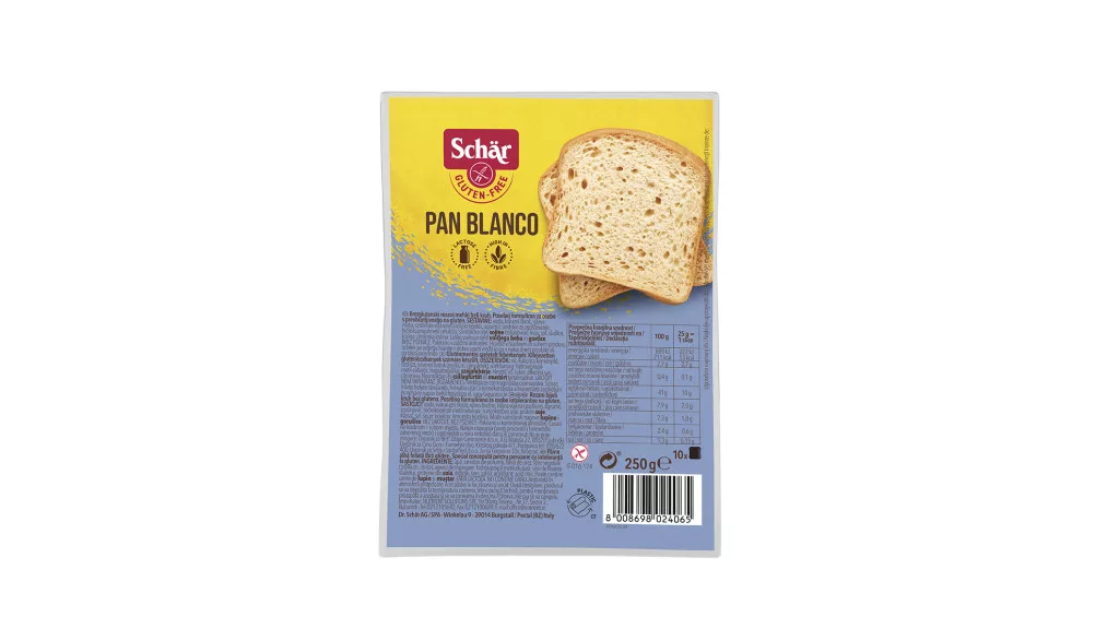 víz, kukoricakeményítő, rizsliszt, növényi rostok (psyllium, citrusfélék), sűrítő anyag: hidroxi-propil-metil-cellulóz; növényi olajok változó arányban (napraforgó, repce), szójafehérje, élesztő, só, cukor, étkezési sav: citromsav.
