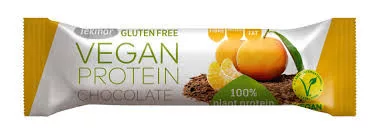 Növényi fehérje keverék 21% (szója, fehérje izolátum, rizsfehérje, borsófehérje izolátum), sűrítőanyag: polidextróz (rost), étcsokoládé bevonat 18% (cukor, hidrogénezett zsírok (kókusz, napraforgó) kakaópor 16%, emulgeálószer: napraforgó lecitin, aroma), szójapehely, kandírozott narancshéj 6% (narancshéj, cukor, glükóz-fruktóz szirup, savanyúságot szabályzó anyag: citromsav, tartósítószer: kálium-szorbát, aromák), nedvesítőszer: glicerin, csokoládé (kakaómassza, cukor, kakaóvaj, emulgeálószer: napraforgó lectin, aroma), kókuszzsír, szójafehérje-extrudátum, szója fehérjeizolátum, kakaópor, ásványi anyag: kálcium-karbonát, inulin (rost), emulgeálószer: napraforgó lecitin, só, L-karnitin, L-tartarát, aroma, vitamin premix (C, niacin, E, pantoténsav, B6, ribloflavin, tiamin, folsav, biotion, B12).